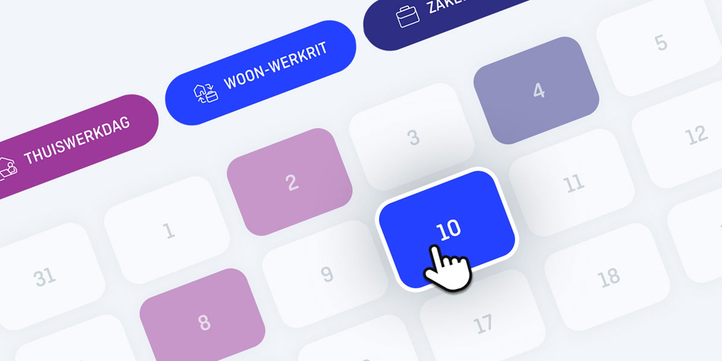 De maandplanner is het centrale punt voor alle handmatige administratie in de Shuttel-app. Medewerkers registreren in een paar klikken thuiswerkdagen en terugkerende woon-werk- of zakelijke ritten met eigen vervoer. Dit kost slechts enkele minuten per maand. Dankzij slimme koppelingen worden vergoedingen automatisch verwerkt in het salaris.